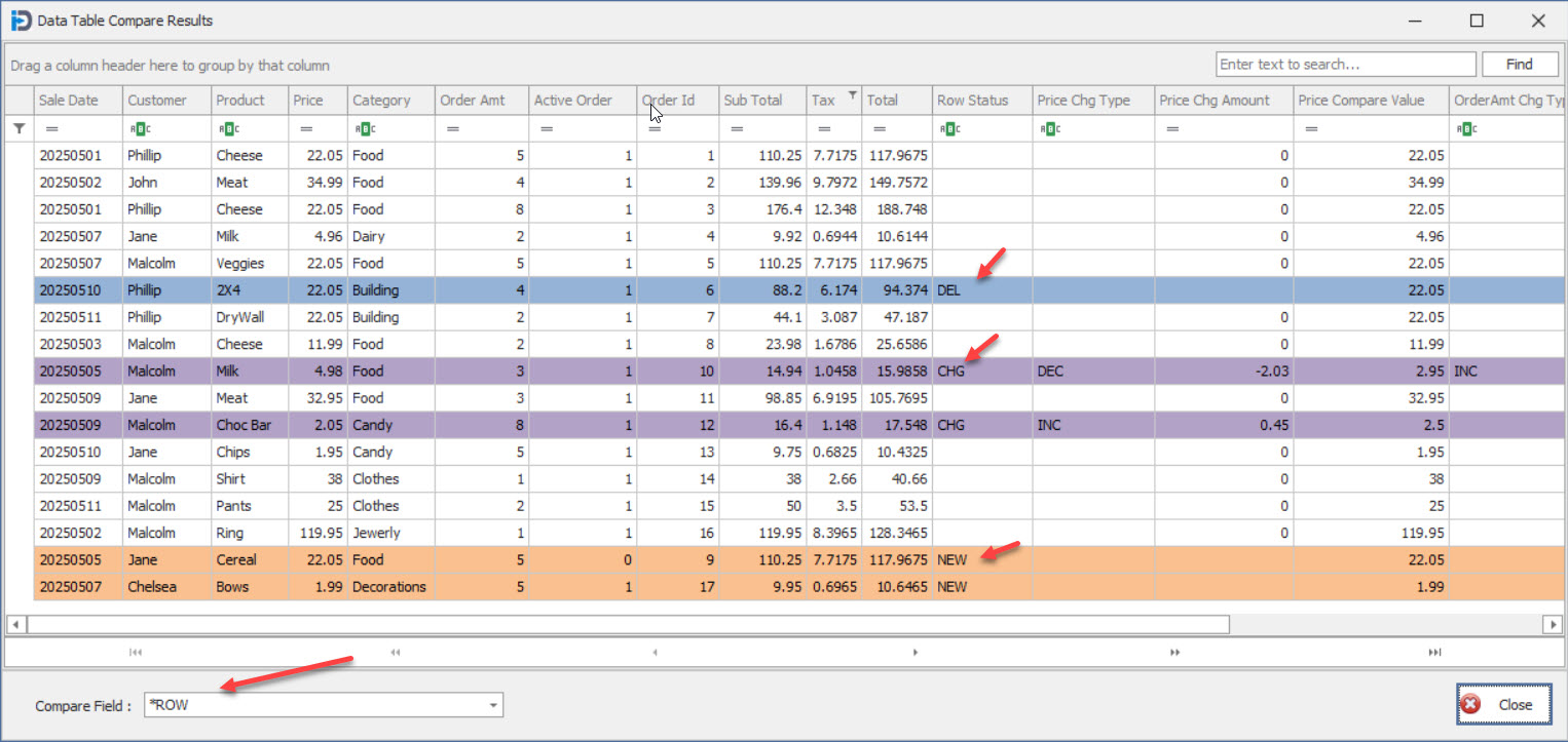 Insights has this capability in an easy to use feature. It will show you the differences visually, using a color coded grid. Imagine being able to quickly see which records have increased, decreased, been added or removed…